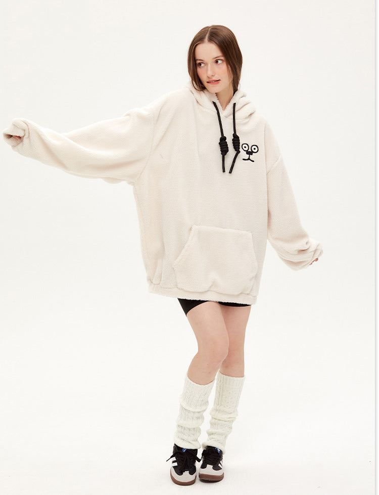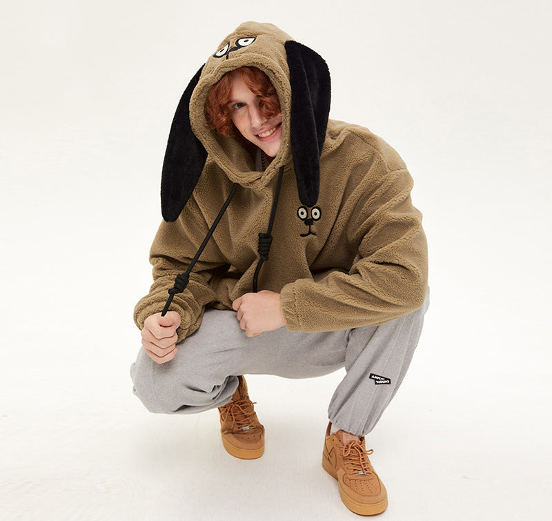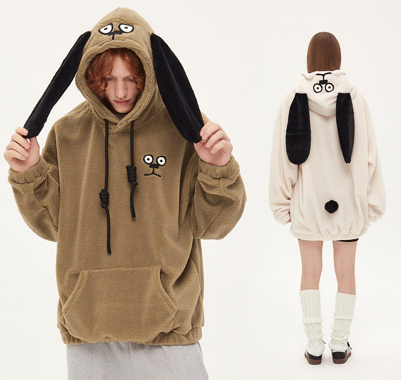 Autumn And Winter Hooded Thick Dog Ears Hoodie Cute Soft Waxy Couple Wear Loose Coat Trend